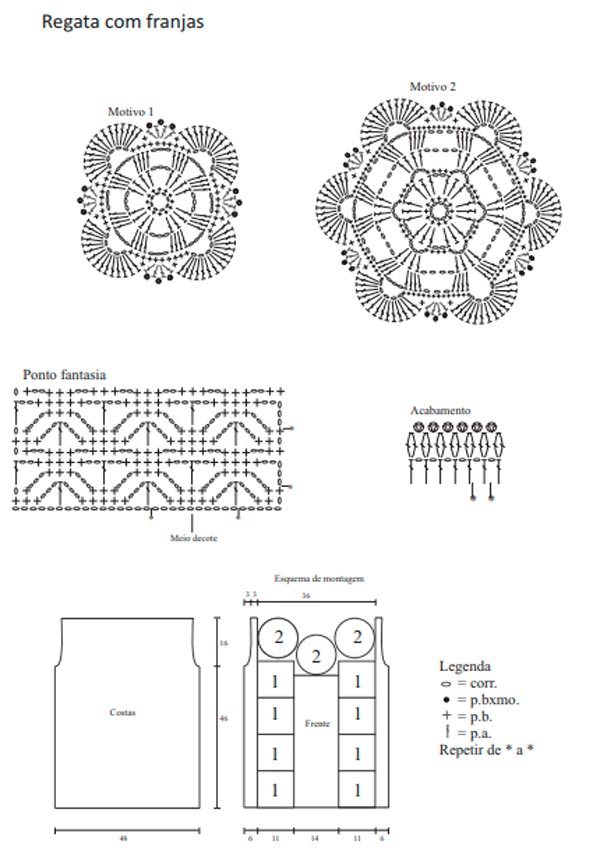 Ropa crochet flecos. Blusa a crochet con flecos muy novedosa, sin mangas y algo calada, pero usted puede innovar en estos diseños, Le dejo los esquemas, por si gusta tejerla.